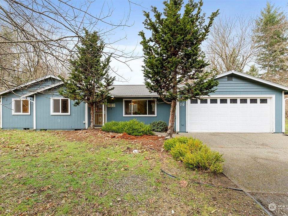 Move-In Ready Rambler on 1.69 Acres! 3 bed + 2 bath. Open concept living with new interior paint. Updated kitchen, stainless steel appliances, quartz counter-tops, eat-up bar. Two living spaces one with wood stove & dining room. Primary suite has double closets & full ensuite bath. Full hall bathroom next to 2 good sized guest bedrooms. Great outdoor space with RV/boat parking, garden space, chicken coop, small stable/barn, shed, mature apple trees & play set. Fully fenced. Located on a quiet and private lot yet only 40 minutes to Bremerton.