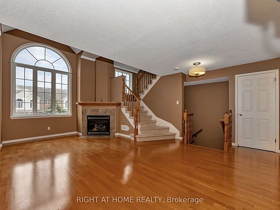 OPEN HOUSE SUNDAY, SEPTEMBER 28, 2:00 - 4:00 P.M. Sun-filled, executive-style 2 bed + loft condo townhome in the heart of Village Green, Beaverbrook. This stately home showcases a dramatic 2-storey living area with soaring windows, a cozy gas fireplace, high ceilings, and gleaming hardwood flooring throughout the main floor. The spacious eat-in kitchen features ample cabinetry, a moveable island, and access to a sunny balcony, recently updated with new appliances, plus a washer and dryer replaced just 2 years ago for added peace of mind. Upstairs, discover two generously sized bedrooms and a versatile loft/den overlooking the main floor, ideal for a home office or reading nook. The cheater ensuite offers a relaxing soaker tub and a walk-in closet. A second balcony and convenient front-door parking add to the appeal. Across the street, enjoy the community library, tennis courts, and green spaces. Everyday convenience is unmatched with quick access to transit, Highway 417, and Kanata Centrum. For active lifestyles, the nearby Richcraft Recreation Complex delivers pools, gyms, trails, and sports fields. Shopping, dining, and cultural events at the Kanata Playhouse are just minutes away, along with the city's thriving tech corridor. This executive home perfectly blends style, space, and location with thoughtful updates, move-in ready and waiting for you!