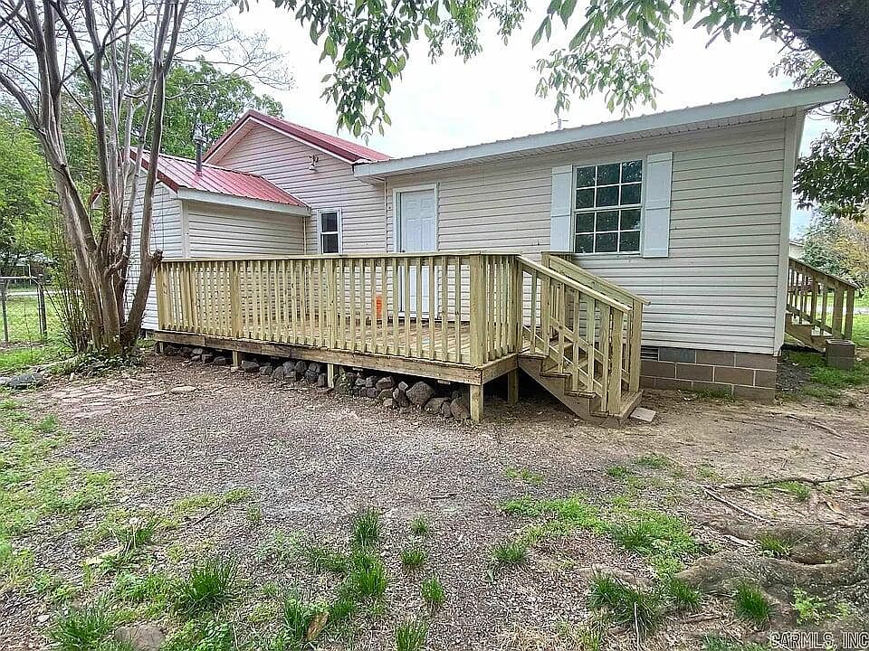 This is a three-bedroom with two full baths; a room off the kitchen could also be a bedroom if you want to add a door. This home has new flooring throughout the house, a new kitchen with new cabinets, countertops, shelving, light fixtures, ceiling fans, electrical switches, and painted on the inside! When you come into this home, you have a nice large living room, a bathroom off to the side, and a bedroom; you walk into the kitchen and dining area, and there is a roomy dining area that could be a dining room or another bedroom, then you have two more bedrooms with a full bath and laundry room. There is a door off the laundry room leading out back to a nice size yard, and down the hall, another door leads out to a large new deck!