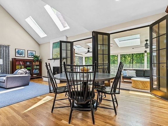 Enjoy this spacious colonial nestled in an amazing fun-filled neighborhood. A welcoming farmer's porch walks you into gleaming hardwood floors throughout. The inviting great room features cathedral ceilings, a bay window, a gas fireplace & handcrafted built-ins. Modern French doors open into a scenic screened-in deck that overlooks acres of private land. The updated gourmet kitchen includes a breakfast bar and center island. Beautiful decorative wainscoting frames the walls of the dining room. The quaint office is conveniently located on the main floor and second floor includes four nicely sized bedrooms. The master bedroom has its own-walk in closet and private full-sized bathroom. A walk-up attic with generous ceiling height provides endless potential for another bonus room or suite. There are new custom cubbies in the mudroom that connects to a fully finished walkout basement with full size windows. This home is located within walking distance to town center & trails to Rocky Woods.