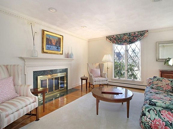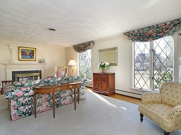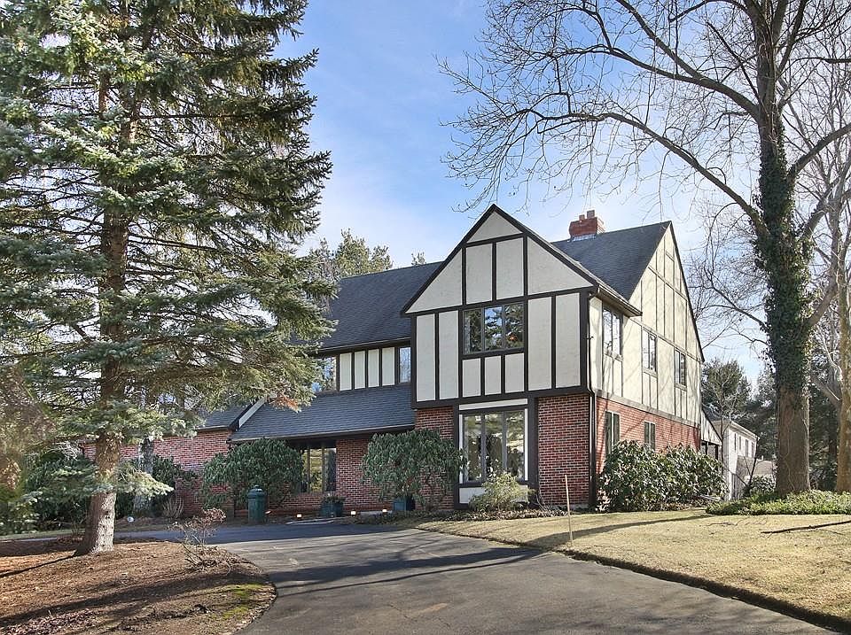 This beautiful Tudor-style colonial is set majestically on a private half acre lot among mature plantings and offers easy access to shopping, highways and public transportation. Enter the home via a covered porch to the foyer which leads to the fireplaced living room, a formal dining room, a large eat-in kitchen and a fireplaced family room with built-ins and access to the back porch and yard. Off of the kitchen is a half bath and mudroom area that leads to the two car garage. Upstairs are five bedrooms, including a master suite with a large office. Other features include gas heat and cooking, central air and central vacuum and oversized windows that let light stream in throughout the day, this home is warm and inviting with hardwood flooring throughout except for the tiled entry foyer. The unfinished basement offers great storage space or the potential for future living space and has rough plumbing for a full bath.