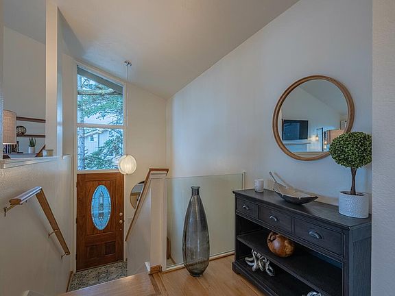 Perched high in the forest with stunning views of the Monterey Bay, the Gabilan mountains by day and twinkling city lights by night, this beautiful split-level home offers a daily reminder of the natural beauty surrounding you. Extensively upgraded & remodeled to take advantage of the views and natural light, the upper level seamlessly connects the spacious living & dining areas where a recently extended deck offers more opportunity to enjoy the glorious vistas. The well-appointed kitchen boasts an abundance of custom cabinetry, expansive quartz countertops & updated appliances. A powder room & double coat closet are conveniently located on this floor. Downstairs you will find the cozy primary suite offering two generously sized, cedar lined, closets & an upgraded en-suite bathroom. Two additional bedrooms, each with a walk-in closet, share the remodeled guest bathroom. A Miele stackable washer & dryer is located on this level. Additional conveniences include an attached single car garage with added storage area, Level 2 EV charging station & a PG&E installed transfer switch for a generator connecting cable. This lovely condo offers a sense of serenity & seclusion, yet it is mere minutes to Pebble Beach, Carmel, Community Hospiital, restaurants & shops, harbor, beaches and parks.