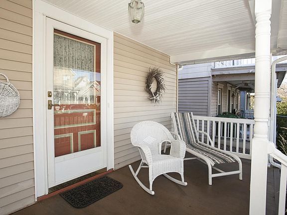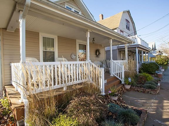 Perfect OCEAN GROVE Beach Home located on the SOUTH END of town!The home has been UPDATED & WELL MAINTAINED.NO MAINTENANCE exterior Vinyl Siding & Railings,NEWER Windows!You are greeted to this OG CHARMER by a lovely front ROCKING CHAIR PORCH.Enter to a COZY & BRIGHT Living Room w/FIREPLACE leading to a SPACIOUS Dining Room.On 1st level are 2 Bedrooms & FULL BATH w/Claw Foot Tub & Wainscoting.The NEWER Kitchen has WHITE CABINETS,Ceiling Fan & Laundry Room.Original HARDWOOD FLOORING throughout 1st level.The 2nd Level offers a FABULOUS,HUGE Master Suite/Sitting area/Office.This spacious room offers VAULTED CEILING,WIDE PLANK Oak floors,Ceiling Fans,wainscotting accents,walk in closet,exposed Brick Chimney & LOTS of Windows + private Full Bath w/ceramic tile & Pedestal Sink!MOVE IN CONDITION!