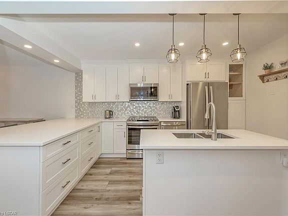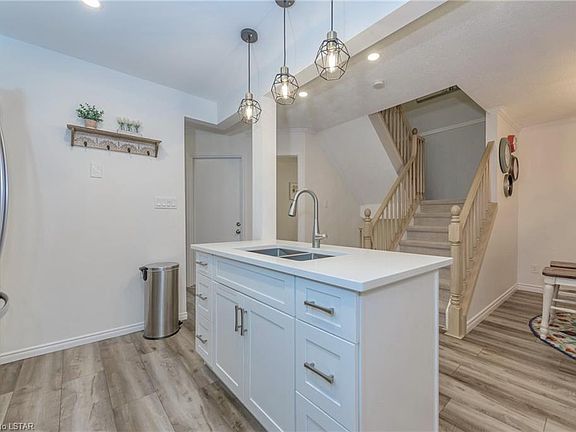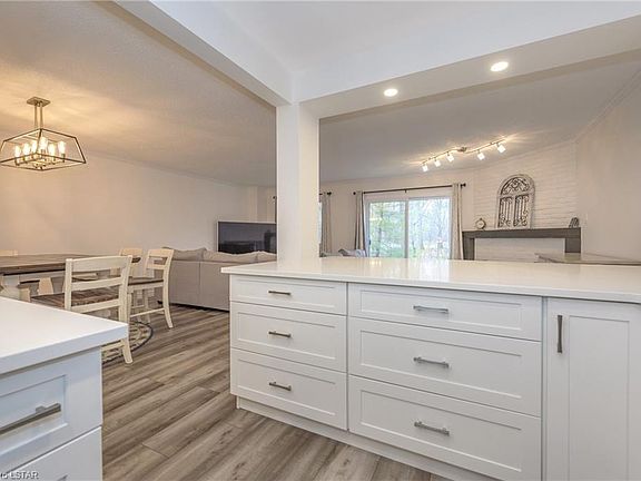 Wow! This is a stunning 3 bedroom renovated condo that backs onto trees. The open concept main floor features an updated kitchen with ample soft close cabinetry, beautiful backsplash, quartz counters, breakfast bar, stainless appliances and an entertainment sized dining area. The great room boasts a fireplace and walk out with treed view. Main rounded out with updated flooring and powder room with quartz. Upstairs you will find three large bedrooms with ample closet space, a gorgeous main bathroom and modern flooring. Master boasts a walk in closet and beautifully remodelled ensuite. The basement will not disappoint. It has also been renovated with a family room, bathroom and versatile office with closet. Enjoy summer days on the private patio. Updated heating and cooling systems. Condo corp well managed and has replaced windows, garage/front doors and concrete drive. Close to 400 series highways and amenities. There is little to do but move in. Don't wait.