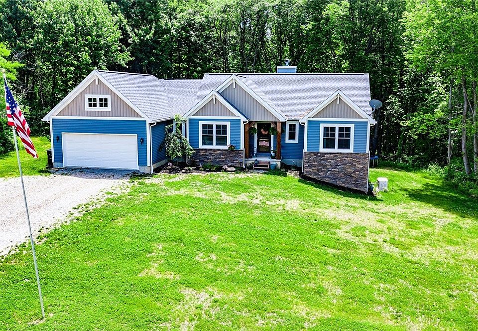 Absolutely gorgeous 3 or 4 bedroom home built in 2017. Here is your opportunity to turn the key and layout the welcome mat! This beautiful custom built home sits on a 4.65-acre wooded lot with plenty of privacy! The large open living space is perfect for entertaining or sitting around the fireplace and flows into the kitchen. This home features a grand kitchen with Stainless steel appliances, plenty of cabinets space, and a large island for prepping meals or morning breakfast. An additional space is off the kitchen and a perfect place for the dining room table while still allowing that open concept that so many dream about. A large pantry offers plenty of storage space. The master suite features it’s own bathroom and walk-in closet. Not many get to live in a ranch home like the ones you see on HGTV, but here is your opportunity! It also offers first-floor laundry and a full basement for storage or could be additional living space! It may sound too good to be true but here is your