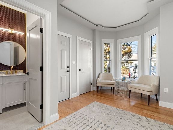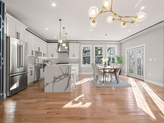 Step into this noteworthy freshly gut-renovated Victorian home with timeless finishes & meticulous modern designs. Located in Newton Highlands, it caters to commuters & offers over 3700 sq ft of sophistication & comfort. The interior showcases a flexible & open concept layout with kitchen, dining room, living room & study. The gourmet kitchen has an expansive island with top-of-the-line Thermador appliances, wine fridge, showpiece pantry w/easy access to a direct entry garage. French doors lead to a private deck & large patio w/gas grill connection & large fenced in yard. First floor is accentuated by expansive windows that provide abundant natural light, recessed lights, a cozy fireplace, high ceilings & tray ceiling. Spacious primary bedroom, w/tray ceilings, walk-in closet, a spa-like bathroom w/black finishes, rain shower & freestanding soaking tub. All bedrooms are large with en-suite bathrooms! The lower level includes family room, gym, entertainment room, bedroom & a full bath