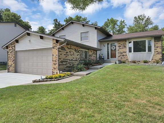 Welcome home to popular Jardin Manor! Spacious 4-level split on a nearly ½ acre lot. Sit on your covered patio & enjoy the big fenced back yard, above ground pool & views of mature trees. Main floor features an updated kitchen w/plentiful cabinetry, quartz counters & eating space, as well as a living room w/bay-window open to the dining area. Walkout lower level offers addl living space - family room w/brick gas log fireplace, full bath & den/office which could also be 4th br. Upstairs features 3 bedrooms & updated main bath! 4th level has bonus rec/theatre room and storage area. Newer items include kitchen '13, main bath '14, Rosati windows '16, roof '17, furnace '22, a/c '23! Oversize garage w/workbench & storage. Additional parking. Storage shed. Convenient location. Close to schools!