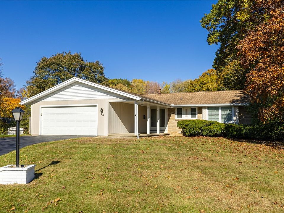 This move in ready, mid century ranch home, is a great example of what makes this neighborhood so special. Walking distance to Odyssey Academy, this 3 bedroom 1.5 bathroom home checks all the boxes! The charming vinyl & brick exterior and large covered front porch gives this home incredible curb appeal. Step inside and you'll find an open layout built-in bookshelves in the living/dining area, & bedrooms featuring with newly refinished hardwood floors. The kitchen features a breakfast bar, Stainless steel appliances lots of space. You'll love the convenience of the direct garage access and first-floor laundry room with its own back yard access. The sunroom provides a versatile space, full of light, perfect for a home office.The primary bedroom includes a cozy window seat with storage, two closets, and private access to the half bath. The full bathroom is updated with a no-step shower. Additional features include Baseboard Hot water heat, a full basement with freshly painted floors, a double-wide driveway, and a two-car garage. You can have peace of mind and privacy with the brand new stockade fencing in the backyard. Dont miss out! Delayed negotiations on Monday, 11/3 at 5pm