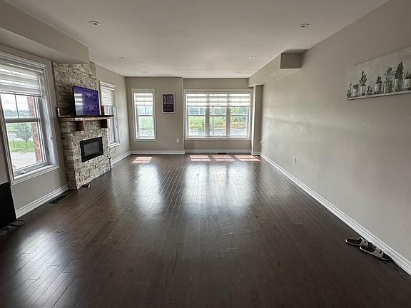 End-unit townhomeBeautiful hardwood flooringStylish pot lightsInviting family roomCustom accent wallCozy fireplaceEat-in kitchen