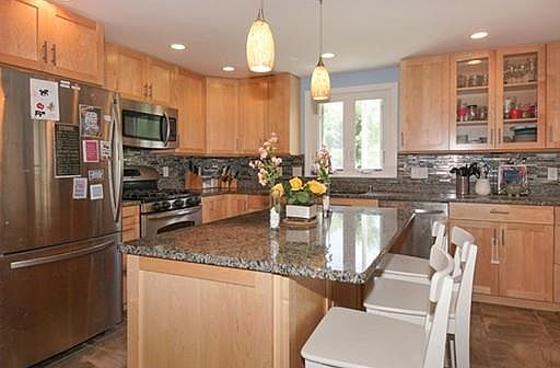 Welcome home! Spacious 4 bedroom Gambrel-style Colonial! This home features a large living room and a nice dining room with pretty built-ins. Spacious updated kitchen with new cabinetry, granite counter tops and island, stainless steel appliances...completely renovated in 2012! There is also a full bath, renovated in 2012 with a new tiled shower and granite top vanity. A den/bonus room completes the first floor. Upstairs you will find four large corner bedrooms, all with great closet space! There is also a newly renovated full bath with pretty tile and a double vanity. Hardwood floors and tasteful paint colors throughout. The house is situated on a large level lot! Don't miss out! Offers due Tuesday at noon.