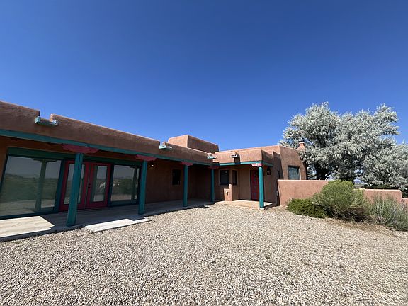 Available for rent on Irish Road in the Vista Linda area of Ranchos de Taos is a 3BR/2BA light-filled home with a spacious, open floor plan. Entrance is into a welcoming great room with a southwest style corner fireplace (decorative only) and high ceilings. Two sets of French doors in this area open to opposite sides of the wrap-around landscaped, irrigated and walled back yard. Covered porches and a flagstone patio complement this outdoor living space. There is also a storage area available for tenant use within the walled yard. The split floor plan separates the primary bedroom and ensuite bath from the secondary bedrooms, bath and laundry room. The primary bedroom features another southwest style, corner fireplace (decorative only) and the bathroom offers a large, walk-in closet and a walk-in shower. An additional set of French doors in this bedroom exit to the back yard patio. The central kitchen looks into the combined area of the great room and dining area. It boasts tiled countertops, a large pantry and an island in which the stove is set. There is saltillo tile throughout the home and vigas in the great room and primary bedroom. This home is very clean, freshly painted and move-in ready! Tenant is responsible for NM Gas (radiant floor heat), Kit Carson Electric, Kit Carson Fiber Optic and WM Trash service. Water and septic are included. Dog(s) may be considered on a case by case basis. This home is being represented by Digs Property Management; minimum 1 year lease; deposit equal to one month's rent due at lease signing; first and last month's rent due at move in, no exceptions. Response to inquiries and showings by appointment will be accommodated M-F, 9-4.