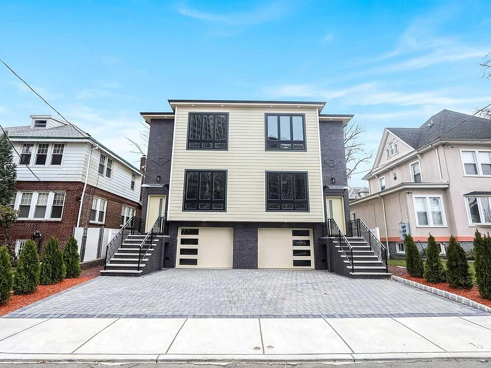 EAST OF PALISADE AVE. Brand new Modern townhome approximately 3,200 square feet plus roof deck 458 square feet located in Bluff area in Cliffside Park built by Elite Homes Construction. South view from the ROOF DECK. Steps from NYC transportation, parks and schools. This townhome features 9 ft high ceiling on main level, Modern kitchen with top of the line stainless steel appliances, center island, quartz countertop, eating area looks out to large balcony. Second floor boasts two ample size bedrooms with full bathroom, master bath with soaking tub, oversize glass shower and with double vanity, central vac, Brazilian chestnut hardwood floor. Laundry room on bedrooms level. Ground level complete with garage, large recreation room, full bath. Roof deck.