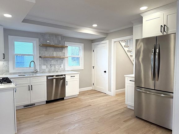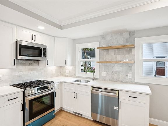 Completely Renovated! Everything has been done (inside & out) to this wonderful home situated in a desirable Walpole neighborhood across from Clarks Pond! This colonial-style home comprises 8 rooms, 3 bedrooms, and 2 full baths with over 1,500 sq ft of living space. From top to bottom, inside and out this house has been completely renovated. The first floor features an open floor plan, New kitchen w/ white shaker cabinets, quartz counters, tiled backsplash, & stainless-steel appliances. The kitchen opens up to the dining room, living room, sunroom, brand-new bathroom, and laundry room. The 2nd floor has 3 generously sized bedrooms w/ great closet space, and a new full bath. This home has a new roof, windows, central a/c, electrical, hardwood floors, and many more updates. This home is conveniently located to the High School, commuter train to Boston, and Walpole’s vibrant center of town. You don’t want to miss this one.