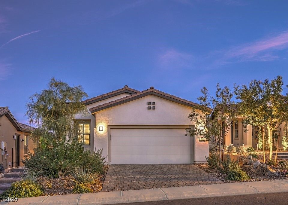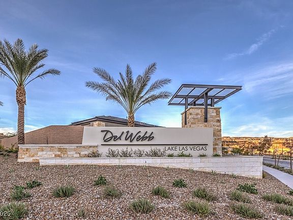 BREATHTAKING VIEWS This gently lived-in 2nd home is sparkling clean and better than new Situated on an elevated culde sac on one of the few streets with views, this beauty is only 2 years young and barely lived-in. With full landscaping, new plantation shutters, & breathtaking mountain, sunset and lake VIEWS, you'll enjoy a cozy fireplace in the family room with wall-mounted TV's and designer finishes throughout. Huge walk-in pantry at kitchen, granite countertops, and SS appliances. This stunning home comes furnished & with a completely stocked kitchen too. Move-in ready and perfect for full-time living, a second home, or a sunny retreat from those cold winter states. Whole-house Kinetico water treatment system, tankless water heater, 2-car garage, and easy-care landscaping. Located in the premier age-qualified Del Webb Lake Las Vegas community with resort-style amenities including pools, fitness center, tennis & pickleball courts, and an active social calendar Welcome Home