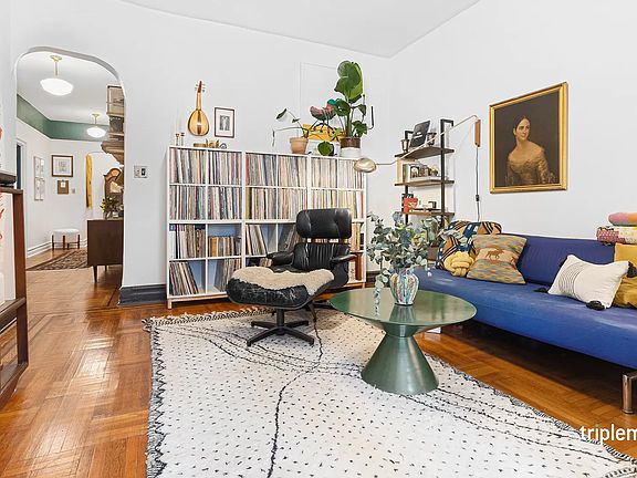 A chic blend of classic and contemporary, this first-floor unit, at over 1,000 square feet, is a polished two-bedroom with Northern & Eastern exposures. Set back from the street you enjoy light, quiet, and privacy along with a view of the building's front yard. Original details, like the refinished parquet floors, have been thoughtfully maintained while the unit has been seamlessly enhanced. Recent improvements include brand-new electrical throughout, built-in library shelves in the hallway, built-out floor-to-ceiling pantry and closets. In addition to the building's smart door buzzer system, this unit includes a Nest mobile-connected smoke/carbon monoxide alarm. Updated in the fall of 2020, the kitchen has brand new stainless steel appliances including a counter depth refrigerator, 5 burner gas stove, oversized countersunk workstation sink, custom quartz countertops and a new dishwasher. The bathroom, gut renovated in the spring of 2021, once again maintains the charm of the original 1930's deep soaker tub but with a modern finish, with an added built-in medicine cabinet and Carrara marble sink shelf and window ledge. All the fixtures throughout the unit are designer or vintage for total harmony. Located within a few blocks distance from Prospect Park, the B, Q, 2, and 5 trains, and plenty of restaurants and hangouts. Reach out to the seller's agents for a neighborhood guide!