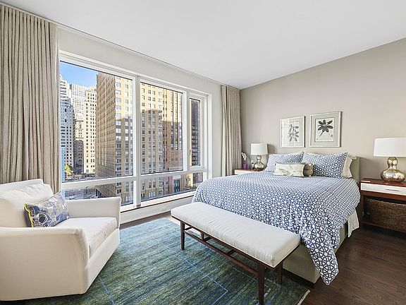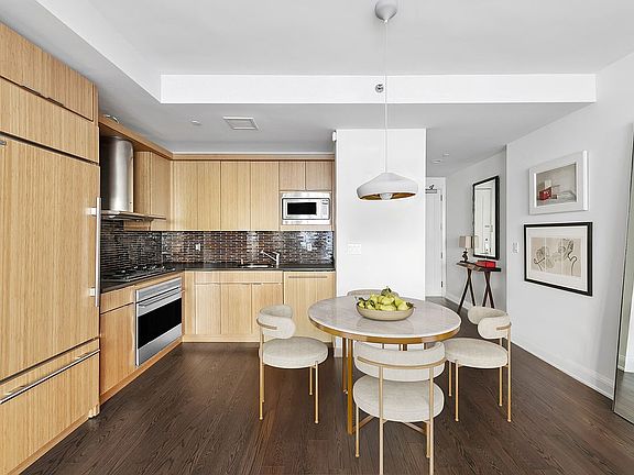 Enter into a gracious foyer that opens into an expansive, light-filled living and dining area with soaring ceilings and floor-to-ceiling windows that bathe the home in natural light. Wide-plank floors flow throughout, grounding the space with warmth and understated sophistication. With open City exposure, this home offers a calm escape from the city's pace.