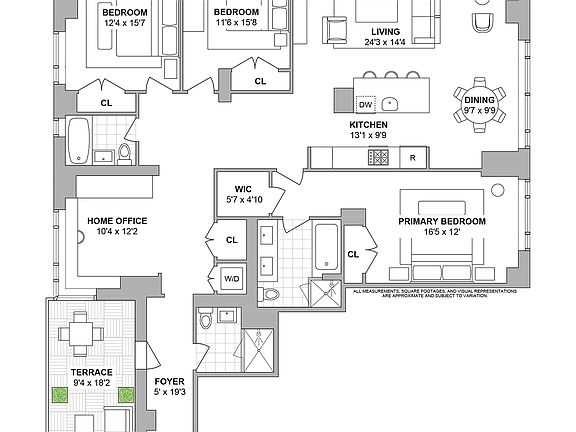 Home officeThree spacious bedroomsOpen-concept layoutThree elegantly designed bathrooms