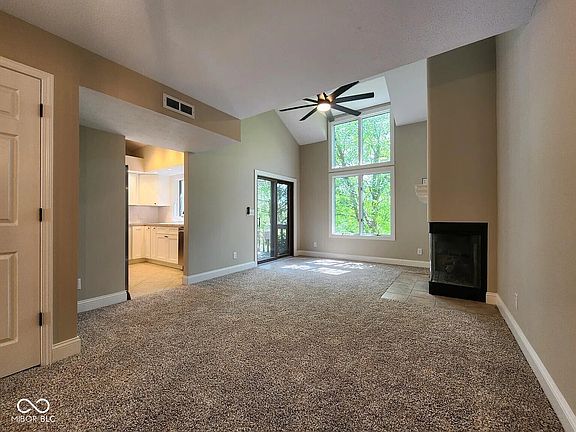 Welcome to this beautifully updated 2-bedroom, 2-bathroom condo offering comfort, style, and convenience in one perfect package! Step into the spacious living room with soaring ceilings, stunning new vinyl plank flooring, and a cozy gas fireplace-ideal for relaxing or entertaining guests. The modern kitchen was tastefully updated in 2023 and features sleek new appliances and contemporary finishes that will inspire your inner chef. The open layout flows effortlessly to a private patio overlooking a peaceful pond, creating the perfect outdoor retreat. This home offers a rare main-level bedroom and full bathroom-ideal for guests or easy accessibility. Upstairs, you'll find a second spacious bedroom with its own full bathroom, offering privacy and comfort. Additional features include an attached garage, access to scenic walking trails leading to Tipton Lakes, and a prime location just minutes from I-65 and the shopping and dining options on 46 West. Don't miss this opportunity to own a stylish, low-maintenance condo in a highly sought-after area-schedule your showing today!