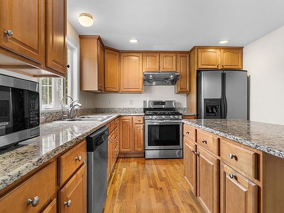 Nestled at the end of a quiet cul-de-sac, this young colonial is a serene retreat that backs up to a tranquil landscape of woodlands and wetlands. The first floor offers an open-concept layout with gleaming hardwood floors, a formal living and dining room, and a family room anchored by a central fireplace. The heart of the home is a spacious kitchen featuring a work island, maple cabinetry, and granite countertops, which extend into the bathrooms. A fantastic finished basement with recessed lighting expands the living space. The second level includes a versatile sitting area, two bedrooms, and a primary suite. Outside, a new patio and large yard are perfect for relaxation, offering gorgeous, ever-changing views of the open land. The location is incredibly convenient, just a short distance on sidewalks to Blanchard Elementary, BCC. A shuttle bus stop is also a stone's throw away, providing a quick ride to the commuter rail, offering easy car-independent access to Acton and Cambridge.