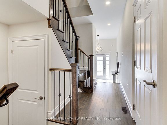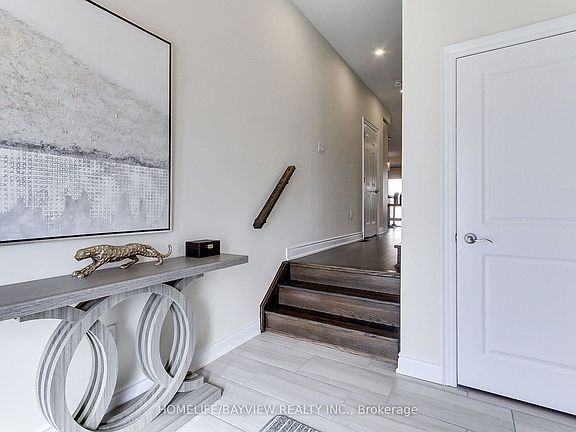 Stunning Freehold Townhouse located in family oriented neighbourhood . Featuring 3 bedrooms and 2.5 baths, modern home with open-concept layout, abundant natural light, and thoughtful upgrades. Large windows in the living area, upgraded kitchen flooring, backsplash, and cabinet hardware. Hardwood floor on the first floor, hardwood staircase, smooth 9' ceilings on the first floor with pot lights. Interior garage access, cold cellar. Property is conveniently located just minutes from Highway 400 with easy access to shopping centers, golf course, and a beautiful park.
