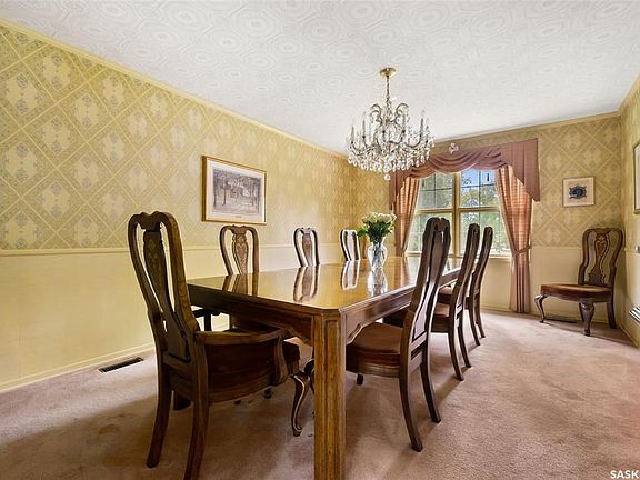 Rare and exceptional property in Regina’s Albert Park. Stately, custom-built home offers over 3,400 sq. ft. of living space on a 18,384 sq. ft. lot. Built on concrete piles, this residence is set in a private park-like setting at the south end of a treed boulevard, surrounded by mature landscaping, gardens, and an in-ground pool. Striking fieldstone exterior, aggregate driveway, and beautifully landscaped yard create impressive curb appeal. Inside, the home features 5 spacious bedrooms on the 2nd level, 4 bathrooms, and timeless design details, including a grand fieldstone fireplace, crown mouldings, and a richly appointed study with custom wood built-ins. Main floor offers a bright living room, formal dining room, sunlit kitchen with eating area, family room with wood-burning fireplace, and direct access to the backyard deck—perfect for entertaining. Upstairs, the primary suite includes a turreted sitting area, updated en suite with quartz vanity and tiled shower, and a serene view of the backyard. Four additional bedrooms and two more bathrooms complete the upper level. Fully developed basement provides excellent versatility with a games area, family/TV room with fireplace, large craft room, laundry, and abundant storage. Recent updates include 2 high-efficient furnaces (2004), 2 central A/C units (2014), reverse osmosis systems, whole-home water filtration, and underground sprinklers. Outdoors, enjoy unmatched privacy with a 7’ cedar fence enclosing the backyard oasis—complete with mature trees, gardens, a large deck, patio, and an 18’ x 36’ concrete pool with slide and diving board. The oversized double garage is insulated and finished. Ideally located near schools, parks, Southland Mall, Harbour Landing amenities, and just 5 minutes from the airport, this property combines space, quality, and convenience in a highly desirable location. Don’t miss this once-in-a-lifetime opportunity. Contact your REALTOR® today to schedule a private showing at 70 Lowry Place.