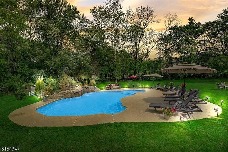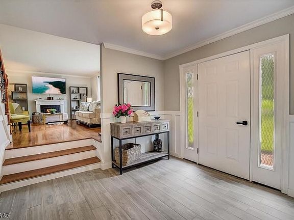 Phenomenal MOVE IN READY home in highly desirable very SAFE neighborhood of Basking Ridge. Walking to beautiful town park w/ lots of hiking trails & public pool for socializing. Neighbors out all the time walking! Enjoy THIS summer in your OWN amazing backyard oasis! Lounge in the heated saltwater pool complete w/ 3 built-in waterfalls w/ large wading area in the shallow end! This home sits on a large level lot with a FULLY fenced in yard where there is also PLENTY of open yard to kick a ball around AND have a garden. Heaven for a zoomie dog!! Main living level features fully renovated kitchen with large center island, loads of counter and storage space, and new stainless steel appliances. Open plan concept is great for gatherings! Formal front foyer has big closet and views straight out to the phenomenal backyard. Glass French doors lead into the den/family/office room where which sliders open right out to the huge Trex deck built for outdoor entertaining. Up just a few steps from living floor are three bedrooms nicely sized. Shared bath was recently updated. Primary bedroom features newly renovated en-suite and two double closets. Large fourth bedroom on 3rd level perfect for home office or guests and has loads of storage. Basement is fully finished with luxury vinyl floors. Great for hangouts or workouts. Has LOADS of closet space perfect for seasonal stuff! The over-sized two car garage has HIGH ceilings great for storage of all kinds of equipment or toys.