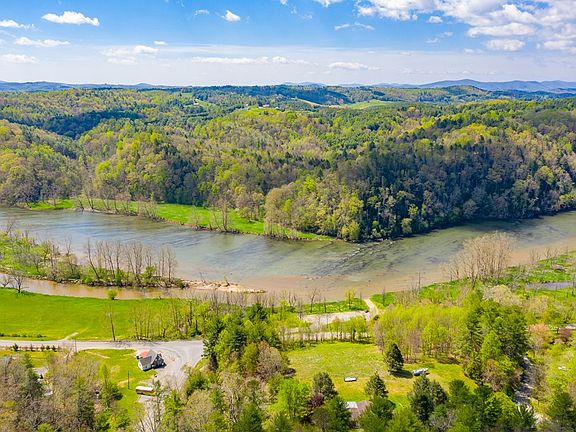 Come enjoy everything the beautiful Blue Ridge Mountains of Virginia have to offer. This lovely home sits on over 5 acres, placed perfectly to enjoy the view of the New River which is right across the street. This property joins the road so nothing will ever take away the view and it's a wonderful one. A public boat ramp is right across the street making water access convenient. Plenty of room to store boats and other toys on the large piece of property. The home is move-in ready. The lower level has plenty of living space, a wood burning fireplace, a full bathroom, very large utility/storage/laundry room. The main level has a large kitchen, living area with gas log fireplace, large sunroom, 3 bedrooms and full bath. There are beautiful built-ins throughout. There is a very large attached carport. Lots of room for outdoor recreation and a large storage building. The New River trail, Town of Galax, Blue Ridge Parkway are just some of the area attractions. Measurements approximate