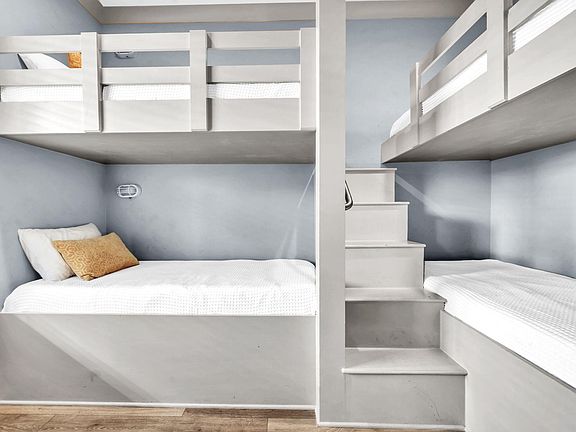 Accommodations include three generous bedrooms, featuring a custom-built bunk room with four bunks and a private primary suite offering balcony access and a spa-like bath with walk-in shower.
