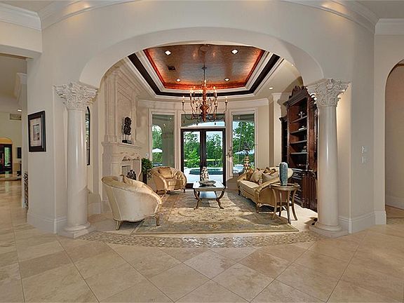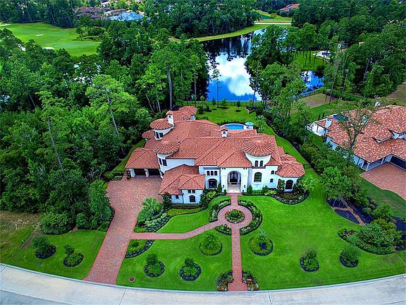 NO WATER NEAR HOUSE DURING HARVEY! Majestic custom home on a .91 acre lot in Carlton Woods Creekside! Guard gated entry, pristinely landscaped front/back, sweeping staircase, architecturally carved ceilings, elevator, 3 balconies, stunning finishes, built-ins & lake views throughout. Impressive chef's kitchen opens to breakfast room & den; handsome study; palatial master retreat w/luxurious bath & dream closet; huge gameroom w/wet bar; private yard in a resort-like setting w/infinity edge pool, spa, Travertine patio, outdoor kitchen & fireplace.