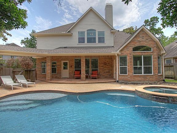 IMMACULATE 2-story home in sought-after Dulcet Hollow neighborhood - walking distance to library, YMCA, and TWHS 9th grade campus! Zoned to Coulson Tough Elementary. Home includes a 2016 roof with ridge ventilation, 10' extension on a detached, 3-car garage with epoxy flooring, dual-sided garage door for rear access (rare find!), and premium outdoor living area with a heated, saltwater pool & spa with rock waterfall, large covered patio, and mature landscaping for privacy! Modernized, open-concept floor plan features fresh interior & exterior paint, new carpet, enclosed study with built-ins, Quartz island kitchen with stainless appliance package, secluded master suite with upgraded granite bath, walk-in shower, and efficient closet storage system for optimal use! Large game room and secondary bedrooms upstairs with computer nook, custom built-ins, overall great storage, updated fixtures and hardware, cat 5 wiring, double pane windows, high efficiency A/C and furnace, and so much more!
