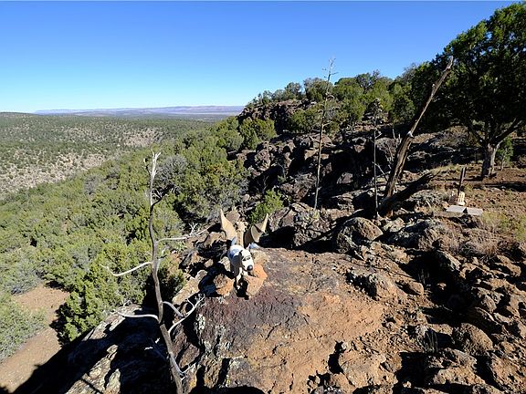 Your dark-sky paradise awaits. AMAZING VIEWS!!! End your day with golden-hour sunsets that light up the cliff face every evening. Star-gazers, hunters, and nature lovers will enjoy this heavily-treed 108-acre parcel in Sierra Verde Ranches that has beautiful rock formations, celestial observation sites to track the solstices, developed trails, and a rustic-but-comfortable campsite with two small shed-cabins, a deck, and even a death-star fire ring. The developed road comes in from the plateau on the south half of the property. It leads you to the campsite on the rim of this local canyon, and the property crosses the canyon to a tree-filled hillside plateau that can also be reached by car from the north. The northeast corner of this hillside area is approximately 965 from grid-tied power, if that is a desire of the future owners. The owner has walked across the canyon, and there are two approaches that are walk-able to the bottom and up the other side. There is abundant wildlife in this area as well. Elk, deer, javalina, fox, rabbits, coyote, and occasional mountain lions are some of the creatures you ll share this property with. The trees are Juniper and Pinion Pine. This parcel also experiences all four seasons, with cooler summers than our southern-Arizona counterparts, and occasional snow in the winter. Sierra Verde Ranches has two community wells for property owners, and they maintain the roads leading to the property. There are two ways to drive to the property from Anvil Rock on the west side, or from Seligman in the east directly via Sol. Come take a hike on it!!