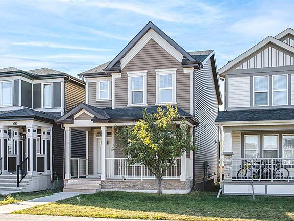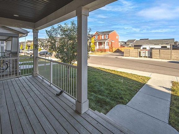 OPEN HOUSE SUNDAY OCTOBER 26th, 1-4PM! Welcome to this stunning Jayman-built 3-bedroom, 2.5-bath home, perfectly situated on a quiet street in the desirable community of Evanston. Featuring nearly 1,581 sq.ft. of beautifully designed living space plus an unfinished basement awaiting your personal touch, this home offers style, comfort, and endless potential. Enjoy your morning coffee on the charming front porch while watching the kids play in the front yard. Step inside to an inviting open-concept main floor with 9-foot ceilings, large south-facing windows, and an abundance of natural light. The spacious living room flows seamlessly into the dining area—ideal for family gatherings and entertaining. A built-in workspace beside the staircase provides the perfect spot for remote work or study. The heart of the home is the modern kitchen, showcasing a large island with seating for three, granite countertops, a subway tile backsplash, stainless steel appliances, and elegant cabinetry with mantel detailing. The rear mudroom features a convenient powder room and leads to a large deck and a sunny south-facing backyard—perfect for BBQs and outdoor enjoyment. With rear lane access, there’s room for a future oversized double garage or RV/boat parking. Upstairs, the primary suite offers a walk-in closet and a bright 4-piece ensuite. Two additional spacious bedrooms, a stylish main bath, and upstairs laundry complete the upper level. The open basement features a large south-facing window, offering great potential for a future recreation room or additional living space. Recent upgrades include a brand-new roof, new siding, soffits, downspouts, and a new dishwasher—providing peace of mind and great curb appeal. You’ll also love the instant hot water system for everyday convenience. Located close to parks, playgrounds, schools, and with easy access to Stoney Trail and Symons Valley Parkway, this turn-key Jayman-built home is move-in ready. Don’t miss the opportunity—schedule your private showing today!