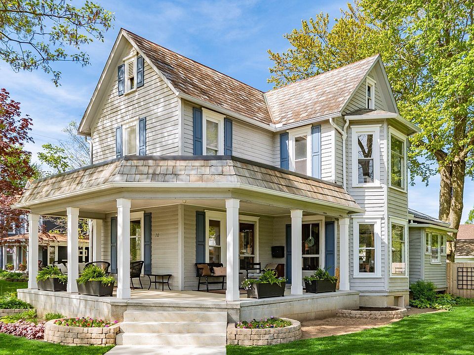 In the heart of Johnstown! Walk to shops & restaurants! Beautifully remodeled from top to bottom! This turn of the century home has been lovingly restored & thoughtfully updated w/new Amish-built kitchen w/inset cabinet doors, island, 42'' cabinets, quartz counters, stainless steel appliances, & new flooring. Refinished original hardwood flrs, new drywall & finish throughout the entire home. First floor bedrm suite w/new bath w/marble wainscoting & bath surround, custom cabinets, quartz counters, & walk-in closet. Upstairs in another remodeled bath w/dual sinks, quartz counters, custom cabinetry, & marble tile. New metal roof complimenting original slate roof, designer landscaping, front porch professionally rebuilt, back porch overlooking fenced yard, oversized 2 car garage, & shed.