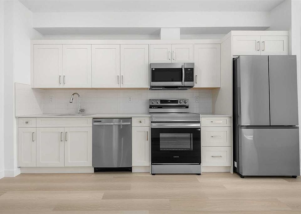 Welcome to your brand new home! This never-lived-in one-bedroom, one-bath condo was just completed in 2025 and is covered by Alberta’s New Home Warranty—up to 10 years for peace of mind, plus a full comprehensive builder warranty for the first year. Enjoy the benefits of a south-facing unit with large windows that flood the space with natural light. The stylish and upgraded LVP flooring runs throughout, offering a sleek, modern look and easy maintenance. The gorgeous kitchen features granite countertops, ample cabinet space, and thoughtful design—perfect for everyday cooking or entertaining guests. A separate HVAC system for each unit ensures always-fresh air—a rare and valuable feature in condo living. This unit includes one titled parking stall and an assigned storage locker for your convenience. Located in an incredibly convenient area—walking distance to a shopping plaza with grocery stores including Walmart and T&T, plus restaurants, shops, the public library, and other essential services. Quick access to Shaganappi Trail and Stoney Trail makes commuting a breeze. Plus, you’re right beside a scenic community green path—perfect for walking, biking, or relaxing outdoors. Don’t miss this opportunity to own a modern, low-maintenance home in a prime location - Book you viewing today!