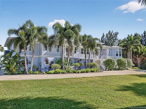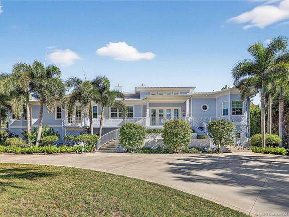 Coastal paradіѕе! This ѕtunning 4,482 ѕq. ft. Braden & Braden cuѕtom hοme (built 2012) offers 4 bedrooms, 5 full and 1 half baths, with breathtaking Intracoastal views from every room. Wraparound porches on the second level capture the coastal breeze, while the first level features a 5-car garage, fenced heated pool, and private beach with expansive waterfrontage. An elevator connects the garage to the main living area, showcasing impact glass, marble floors, and a double-sided coquina stone fireplace between the living and dining rooms. The gourmet kitchen boasts a gas range, double ovens, oversized refrigerator/freezer, and two dishwashers opening into the large family room. The owner's suite includes two walkin closets, and his and her bathrooms! Enjoy serene views to Hutchinson Island as boats glide by and birds dance on the water. This CBS home is built on 69 poured concrete pilings with breakaway walls making it a tropical sanctuary. A very special first time offering!