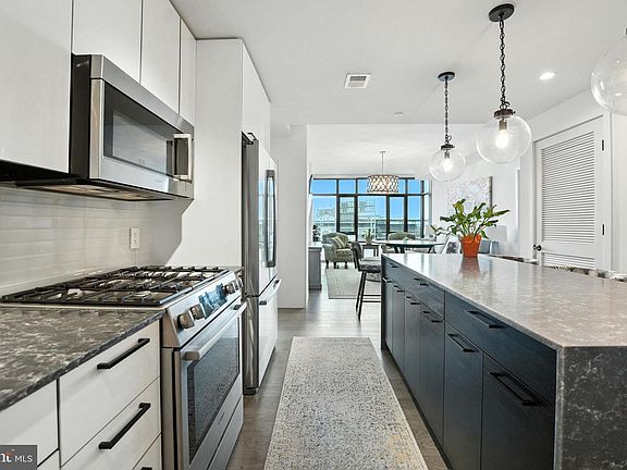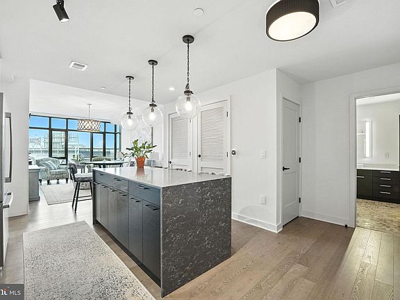 Welcome to this 9th floor 2-bedroom, 2-bath condominium unit with parking, luxury, convenience, and proximity to the action. With direct views of the Anacostia River, the Frederick Douglass Memorial Bridge, and Nationals Stadium, this unit offers a front-row skyline seat to one of the most vibrant neighborhoods in the city. The modern layout features 9-foot ceilings and floor-to-ceiling thermal paned windows that flood the space with natural light while offering exceptional insulation and privacy. The kitchen is built to perform, featuring sleek dark Quartzite countertops, an island, elegant two-tone cabinetry, and soft-close drawers and doors. Throughout the unit, hardwood floors and tile deliver both sophistication and durability. In-unit laundry with a full-size washer and dryer means convenience is always within reach. Both bedrooms are outfitted with walk-in closets and ensuite bathrooms featuring upscale fixtures and linen storage. The primary suite is designed for recovery and rest, with a spa-like bath that includes a dual vanity and a spacious walk-in shower. This secure and peaceful condominium community shines on game days, offering a secure perch to watch the game, with every comfort from home. Take advantage of exclusive amenities that complement your vibrant lifestyle, including an 11th-floor lounge with stadium views for Nationals games, a rooftop terrace with outdoor fireplaces, grilling stations, and multiple televisions for every swing. The rooftop pool offers a refreshing place to recharge, while dedicated private offices, a lounge area, and a fully-equipped conference room on floor 1.5. Stay in peak condition year-round in the fitness center, or wind down in the Zen Garden on the 2nd floor. This unit also includes one secure underground parking space, plus a large personal storage locker. Daily life is streamlined with 18-hour concierge service, package receiving, and convenient bike storage. Positioned between the Wharf and Capitol Hill and only a 3-minute walk to the Metro, this location offers unmatched access to D.C.’s premier neighborhoods. Nationals Park is across the street, and Audi Field is just 10 minutes on foot—ideal for professionals who want to stay close to the action while enjoying elite living. Surrounding the building, you’ll find a dynamic mix of restaurants, entertainment venues, grocery stores, parks, and waterfront trails. Don’t miss this opportunity to live like an All-Star.