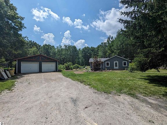Updated 3 bedroom, 1.75 bath ranch home on nearly 10 Acres! Located in a private setting, this surveyed corner parcel property offers frontage along both Noggle Rd and M-65 w/ a nice mix of woods and greenspace! The house has been recently updated with some newer windows, flooring, submersible well pump & vinyl siding. For storage, there is an approximately 24x40 outbuilding w/ a partitioned 14x24 workshop room within it. Nature definitely presents itself with this property with many signs of wildlife roaming throughout!