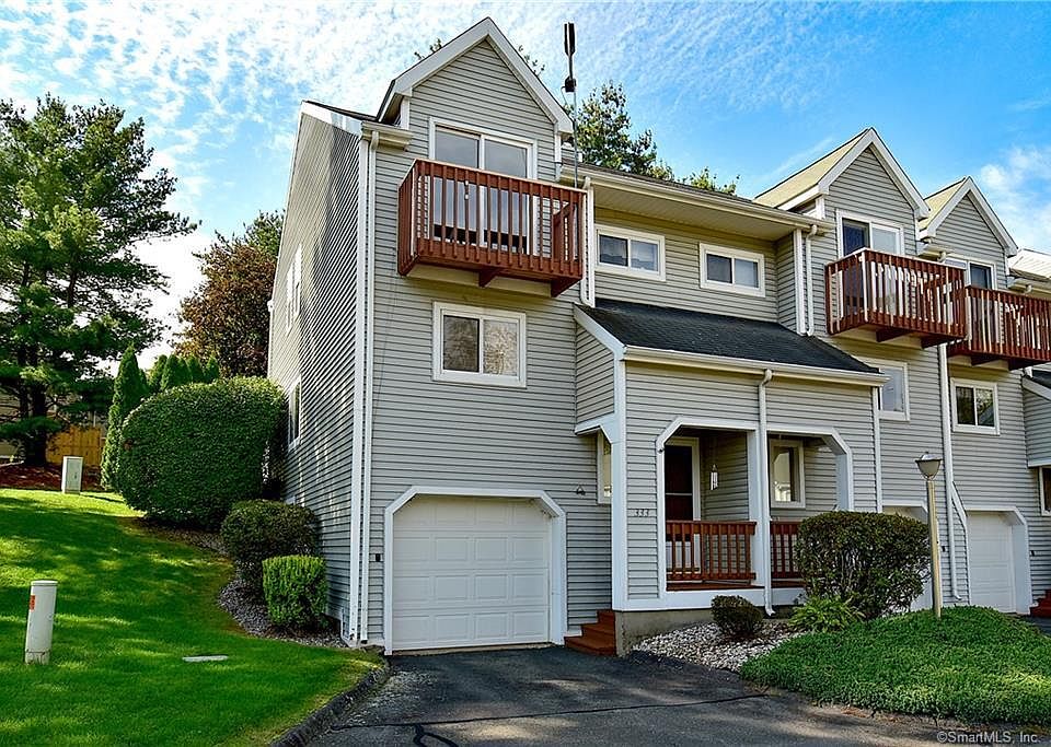 Immaculate bright & sunny 2 Bedroom, 2 bath end unit townhouse with great open layout and 1 car oversized garage, in desirable Ryefield II. Features ceramic tile entry, remodeled kitchen with newer countertops; s/s refrigerator, dishwasher and microwave, open to dining room with newer laminate floor, and large inviting living room with fireplace, w/w Berber carpeting, and sliders to private 17x10 deck. Large primary bedroom with 2 double closets, w/w Berber carpeting, and pocket door to full bath. 2nd bedroom with w/w Berber carpeting and sliders to Juliet deck. 2nd floor laundry with new Hotpoint washer and dryer. First floor full bath with ceramic tile floor and walk-in shower. Lower level work bench and storage shelves. Quiet setting, convenient to schools, shopping and highway. Act Quickly!