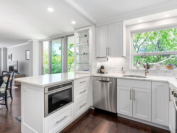 Coolidge Corner oversized, completely redone 2-bedroom condo in a highly sought-after midrise elevator building. Sited in a courtyard, with manicured grounds, and adjacent to Griggs Park. Single-floor living. This is a sun-drenched corner unit condo that has 2 exposures. There are 2 large bedrooms and a large open living dining space with direct access to new glass sliding doors to the large balcony. The renovated kitchen has custom cabinets has white marble counters, as well as stainless steel appliances. The renovated bath has an oversized shower with glass doors and stone tiling throughout. There are large expansive windows throughout. There is Central Air. Includes a heated garage space and extra storage. Minutes to the Longwood Medical Area, schools, shopping, and C and D T lines. Easy access to Universities, Fenway Park, and Downtown Boston. 96 walk score !!!!