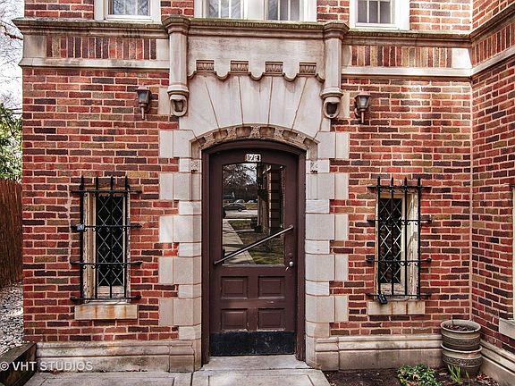 Beautiful vintage condo in the heart of Historic Riverside. Building and unit have been remodeled and refurbished. This freshly painted first floor unit features a formal living room with sconces, gleaming hardwood floors, and updated lights & fan/lights. The separate dining room is adjacent to the kitchen with granite counters, 42 inch cabinets, and stainless appliances. Beautiful arched doorways add to the charm. Washer and dryer are in the unit. Additional storage is available in the basement. You are steps away from downtown with Metra, shopping, and restaurants. Lovely place to call home.