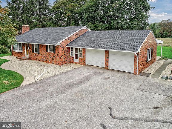 Lovely brick 3 bedroom, 2 bath rancher in New Oxford. Country living at its finest on this .62 acre homesite that backs up to farm fields. A to die for 40 x 30 3-bay garage insulated and wired for 220 (heavy duty)! The one bay side garage is 13.5 ft high and has a 12 ft Atlas 9,000 lbs lift which stands 12 ft high. The garage door is 9 ft wide by 10 ft high. With the oversized attached 2 car garage, this home offers a total of 5 garages with so many possibilities. Remodeled kitchen with granite countertops and an undermount-sink for easy cleanup. Heated ceramic tile bathroom floor to keep warm on those cold chilly days. New roof was put on in 2016. New boiler and water heater in 2017. In 2018 a new sump pump. New a/c unit in 2016. Replacement windows. Finished lower-level family room has a newly remodeled bath, and an exterior walk up to make your move-in so much easier! Home also features a beautiful flagstone breezeway and a 42 x 14 covered patio. Walk- up floored attic for extra storage. Dont miss this unique home as it wont last long!