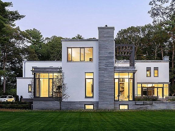 Elegant living meets modern style in this stunning light filled Weston residence. In an A+ location on a private Rd, this contemporary home offers seclusion w/ easy access to Boston. Newly constructed, this 5 bed, 7full, and 3half bathroom property was thoughtfully designed & built to the highest standards. Soaring 12’+ ceilings & walls of glass bathe every room w/ sunlight & open to the exterior for “indoor-outdoor” living. The main door opens to the welcoming foyer, dining & living areas. The gourmet kitchen has top of the line appliances & breakfast area - open to the gracious family room. A spacious office, mudroom & 3 car garage complete this floor. On the 2nd floor is a glorious primary suite w/ 2 generously sized baths & dressing rooms and 4 additional bedroom suites & laundry room. Lower level has playroom, media room, gym, full bath, cedar closet, laundry & storage. The exterior features a sport court, glorious yard spaces/patios & grill. Full house smart systems complete this masterpiece.
