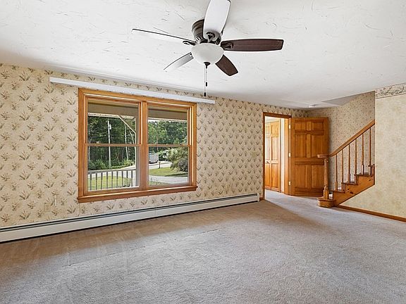 Welcome home to this well maintained 3 bedroom 2 bathroom colonial in the highly desired town of Phillipston, MA. Located in a quiet neighborhood, this property sits on a 1.15 piece of land. The quaint wrap around farmers porch welcomes you inside the home. The first floor is made up of a living room, a large eat in kitchen with access to the exterior deck, mudroom, full bathroom and laundry room. Upstairs you will find 2 bedrooms, a full bathroom and the master suite with vaulted ceilings and a custom walk in closet. The basement is finished offering additional square footage with a wood burning stove. The back yard provides a private escape with the large patio, two story barn and fenced in dog kennel and an oversized two car garage. This home has great bones and is in a great commuter location. Nothing left to do but move in!
