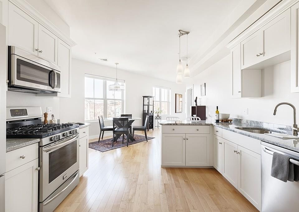 Seller has moved and wants to sell. The Flatiron @ Union Square was built in 2017 and is a professionally managed elevator building with strong financial reserves and high owner-occupancy. Modern and upscale, this two-bed/two-bath is near the incoming Union Square green line MBTA stop and less than a mile to Central Square. Located on the 4th floor, this unit features oversized windows spanning the length of this stunning floor plan, with 9-foot ceilings and a private 100 sq ft deck. White shaker style cabinets, granite countertops, stainless steel appliances and maple floors offer modern, understated finishes. Amenities include garage parking, in-unit laundry and plentiful closets. The association has a large common deck and a patio, plentiful bike racks, and private storage rooms on each floor. Walk score of 96! - can be shown on short notice. Buyers must be pre-approved or have financial verification.
