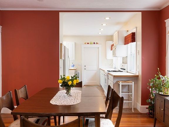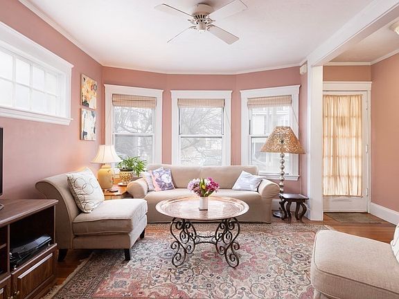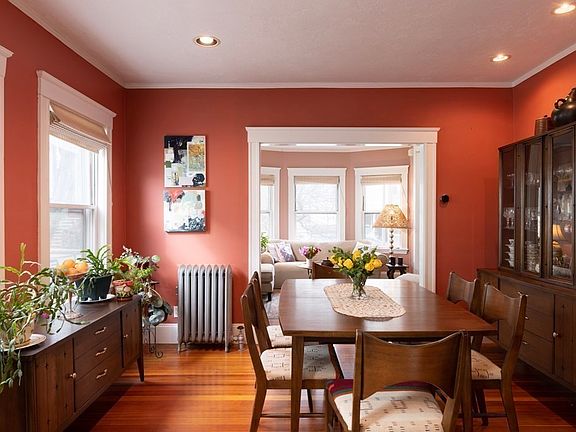 Lovely updated first floor 3 bedroom condo in desirable East Watertown. Step off the exclusive use front porch into the vestibule (with closet) and into the light-filled, open-floor plan living room, dining room and kitchen. Exclusive use rear porch off the kitchen overlooks the pretty yard & garden (with a well-tended and prolific pear tree) - perfect for al fresco dining. Beautiful wood floors, high ceilings, large windows, and period moldings throughout. Bedrooms all have large closets. Additional amenities include in-unit washer and dryer; deeded garage parking + 1 exterior space; deeded use of half of the basement. Unit repainted in 2022 and has been meticulously maintained. Located two blocks from just completed Hosmer Elementary School and new athletic fields; 10 minute walk to the Charles River & bike path, newly developed and vibrant Arsenal Yard with shops, restaurants, and entertainment. Convenient location for commuting and bus routes to Cambridge and Boston.