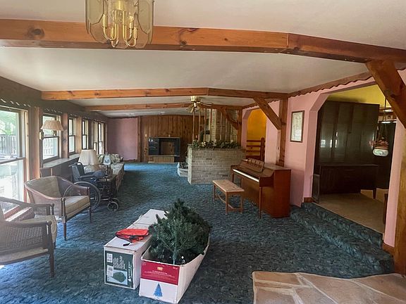PRICE REDUCTION!!! Call now to see this very large and spacious 2 bedroom, 2 bath home with plenty of room and a basement. The home has a living room, kitchen, dining area, plus a den plus a two car garage. This large home is located on an 11 acre wooded parcel. There is a separate log building and large equipment shed with workshop area. The property needs to be updated and can use a remodel or repairs. For lots of privacy this dwelling is located near the end of a cul de sac so very few people or vehicles will be coming by. Sit on the front porch or on the private deck and watch the deer, turkey and other animals . On a clear night you will delight to see the moon, stars, satellites and shooting stars. This is a great find for someone who wants a get away and need a rural oasis The house has some items remaining which will be left .