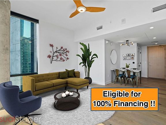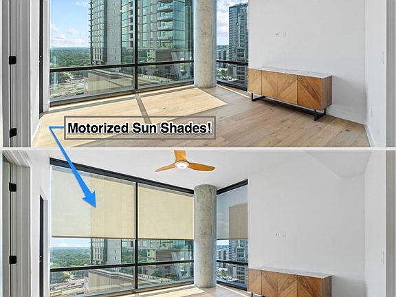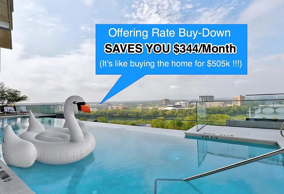 **Seller RATE BUY-DOWN option lowers monthly payments by $343 per month with 5% DOWN! Nestled in the heart of the city's fastest-growing area, this downtown condo perched on the 13th floor epitomizes luxury living with its prime location, expansive panorama view and modern amenities. Residents enjoy unparalleled convenience with a vibrant walking neighborhood at their doorstep that is brimming with trendy bars and gourmet restaurants. Just steps away, a scenic trail winds its way through lush greenery around Ladybird Lake that is perfect for morning jogs or evening strolls. The gourmet kitchen is equipped with German luxury appliances by Miele, which include a sleek GAS COOKTOP and built-in refrigerator, perfect for culinary enthusiasts. Enjoy a spa-like experience with the LARGE walk-in shower with a seating bench. NO CARPET. Automatic BLACK OUT shades in the bedroom with a CUSTOM window pane for energy efficiency and noise cancellation. THREE SPEED A/C unit addition (low/medium/high vs standard on/off) for energy efficiency and low fan noise. Two $1200 "smart technology" HAIKU fans. RESERVED PARKING space on the first level of resident parking. No more winding around and around and around to get out of the building! There's also a state-of-the-art fitness center, a serene outdoor YOGA deck, a sparkling infinity pool with Cabanas and skyline views, a DOG PARK, and an elegant lounge complete with a vinyl record placer! This condo offers the ideal blend of urban sophistication and natural beauty, making it a coveted address for those seeking a balanced and elevated lifestyle! (**Rate and final terms based on buyer qualifications.)