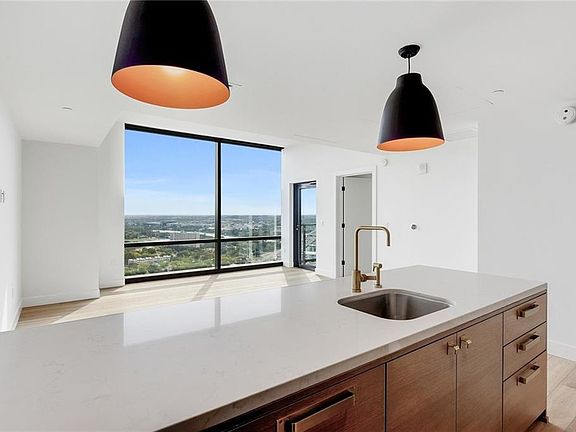 The largest 1 bedroom floor plan available at 70 Rainey, the A3 has direct east-facing views w/ expansive windows in the living & master bedroom.The master boasts a double-vanity marble countertop, walk-in marble shower & spacious walk-in closet.The kitchen is open to the living, separated by a sizable island complete w/ Miele appliances.European wide-plank white oak flooring, antique brass hardware & fixtures are a few incredible details. Do not miss the intimate inset balcony.*Photos of similar unit*