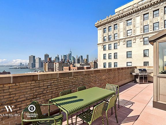 Every day is a vacation in Penthouse 11B at 70 Remsen Street! Step out of your bedroom onto your own private terrace with sweeping panoramic views of NYC Harbor and downtown Manhattan. Experience the sunset night after night sitting from your elevated dining nook. Curl up by the wood-burning fireplace and relax because you own one of the most unique apartments in all Brooklyn Heights. Extremely hard to find, this top floor 2 bedroom penthouse apartment in a pre-war full-service coop is the crown jewel of The Remsen. Perfectly situated on iconic Remsen Street, only steps away from The Promenade, the new Brooklyn Bridge Park, the freshly renovated recreational waterfront Piers, shops and restaurants on Montague Street, and an abundance of public transportation options that will deliver you to Manhattan in 10 minutes. Embraced by the newly renovated 350 square foot water-facing terrace, every room has a view of the Harbor - and complete privacy. Split bedrooms (or one bedroom and home office) offer total flexibility. The open kitchen has stainless steel appliances and granite countertops. The apartment features abundant storage and a large California walk-in closet. There is even a second outdoor terrace off the kitchen, good for storing fireplace wood or an herb garden. The Remsen, built in 1929, is an architecturally significant landmarked destination for historical walking tours because of its distinctive facade. With full-time doormen and superintendent, your mail/packages are held by the concierge/doormen and handed to you upon entering. Amenities include a bike room and a basement laundry room. A service entrance provides easy access for large deliveries. 1% flip tax paid by purchaser. Maintenance includes utilities and cable.