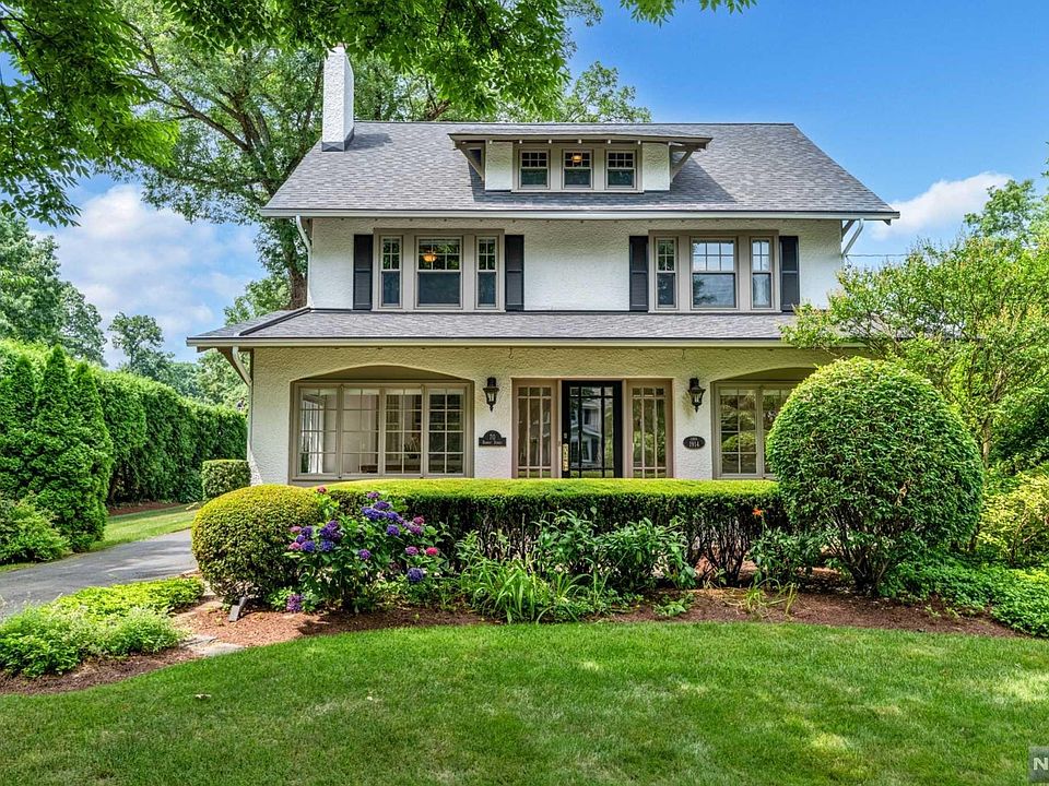 Impeccably styled 4-bedroom craftsman colonial combining modern flair with an unbeatable location just around the block from NYC transportation and vibrant downtown Glen Rock. All the following are new or renovated in the past 5 years - roof, basement, eat-in kitchen, 2nd-floor hallway bath, Anderson windows, ductless AC in the sunroom, and double insulation. Upon entering, an oversized sunroom provides the perfect setting for year-round entertainment, welcoming you to an open concept with maple hardwood floors throughout the seamlessly connected dining room & living room with fireplace, family room with French doors leading to a large patio, modern eat-in kitchen, convenient mudroom entry, and powder room. Upstairs is a generously sized primary ensuite, 3 more bedrooms, and a hallway bath with a radiant heat marble floor. Finished rec/living room, gym space & laundry in the basement, 2-car garage, and a private, flat backyard with room for a pool. It doesn't get better than this!